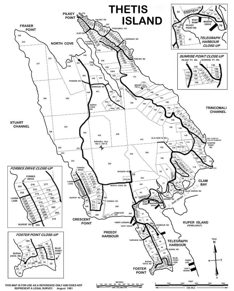GENERAL INFORMATION: The Thetis Island Community Website Chemainus Community Website Go Nanaimo dot com (including General information for Vancouver Island) Vancouver Island dot com More Living Magazine - A variety of articles on-line about attractions on Vancouver Island and the Gulf Islands, including one about Cufra Cliffs Chemainus Theatre information ADDITIONAL ACCOMMODATIONS: On Thetis Island In Chemainus GETTING AROUND THETIS: To download the Visitors' Guide to Thetis Island, go to the Visitors page at the community website. Right-click to download a map of Thetis Island (Use "Save target as..." option)